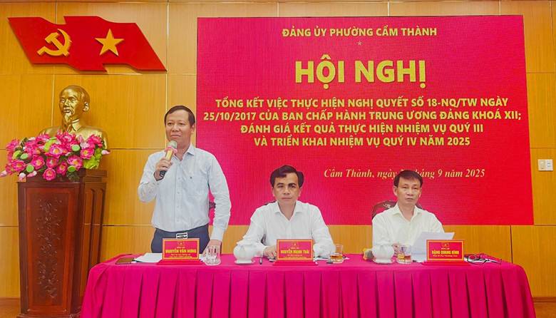 Chiều 24/9, Đảng ủy phường Cẩm Thành tổ chức Hội nghị tổng kết thực hiện Nghị quyết số 18-NQ/TW ngày 25/10/2017 của Ban Chấp hành Trung ương Đảng khóa XII; sơ kết công tác quý III và triển khai nhiệm vụ trọng tâm IV năm 2025.
