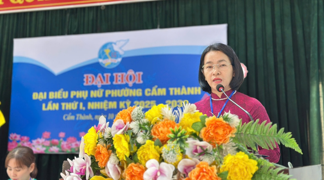 Biểu dương và ghi nhận những kết quả mà Hội LHPN phường Cẩm Thành đã đạt được trong nhiệm kỳ qua, đồng chí Võ Thị Anh Trâm - Phó Chủ tịch Hội LHPN tỉnh Quảng Ngãi và đồng chí Nguyễn Văn Hưng - Phó Bí thư Đảng ủy, Chủ tịch UBND phường nhấn mạnh thêm: để thực hiện thắng lợi các mục tiêu, phương hướng đã đề ra, Hội LHPN phường cần tiếp tục bồi dưỡng đội ngũ cán bộ, hội viên nòng cốt; đẩy mạnh ứng dụng khoa học – công nghệ, đổi mới sáng tạo, thúc đẩy chuyển đổi số trong hoạt động; tích cực tuyên truyền, vận động các tầng lớp phụ nữ tham gia các phong trào thi đua, các cuộc vận động; nâng cao công tác phối hợp, huy động các nguồn lực; tham gia xây dựng Đảng và hệ thống chính trị; thực hiện bình đẳng giới, công tác giám sát và phản biện xã hội; bên cạnh đó, cần kịp thời nắm bắt tâm tư, nguyện vọng, quan tâm bảo vệ quyền và lợi ích hợp pháp, chính đáng của phụ nữ và trẻ em; tiếp tục phát huy vai trò nòng cốt của phụ nữ trong phát triển kinh tế - xã hội địa phương.