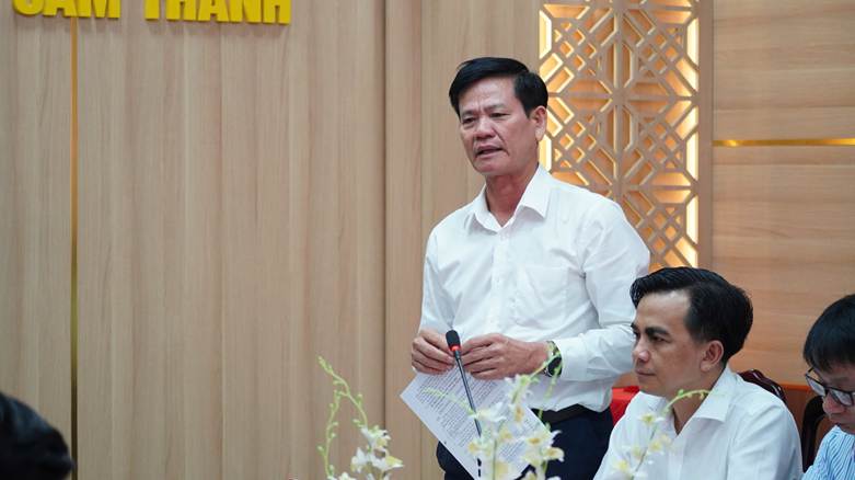 Bí thư Đảng ủy, Chủ tịch HĐND phường Cẩm Thành Nguyễn Mạnh Thái báo cáo tại buổi làm việc