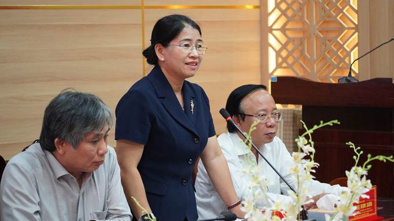 Ủy viên Ban Thường vụ Tỉnh ủy, Trưởng Ban Nội chính Tỉnh ủy Trương Thị Linh phát biểu tại buổi làm việc
