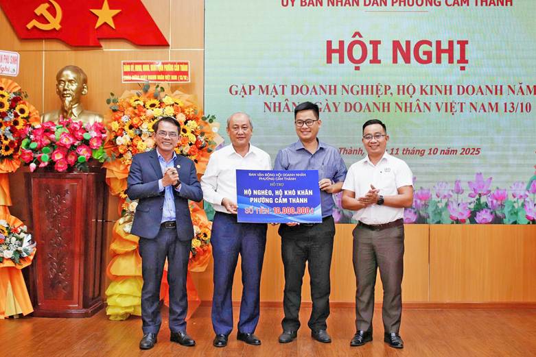 Tại buổi gặp mặt, Ban vận động Hội Doanh nhân phường Cẩm Thành cũng trao bảng tượng trưng hỗ trợ kinh phí cho các hộ nghèo, hộ có hoàn cảnh khó khăn trên địa bàn, thể hiện tinh thần trách nhiệm xã hội và sự đồng hành của cộng đồng doanh nghiệp với công tác an sinh xã hội của địa phương.