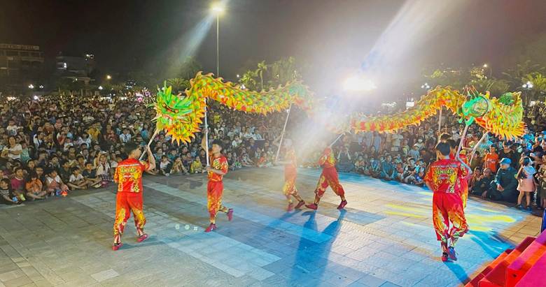 Không khí đêm hội thêm sôi động với phần giao lưu Chị Hằng – Chú Cuội và màn múa lân – sư – rồng rực rỡ sắc màu, mang đến niềm vui và ấn tượng đẹp trong lòng các em thiếu nhi.