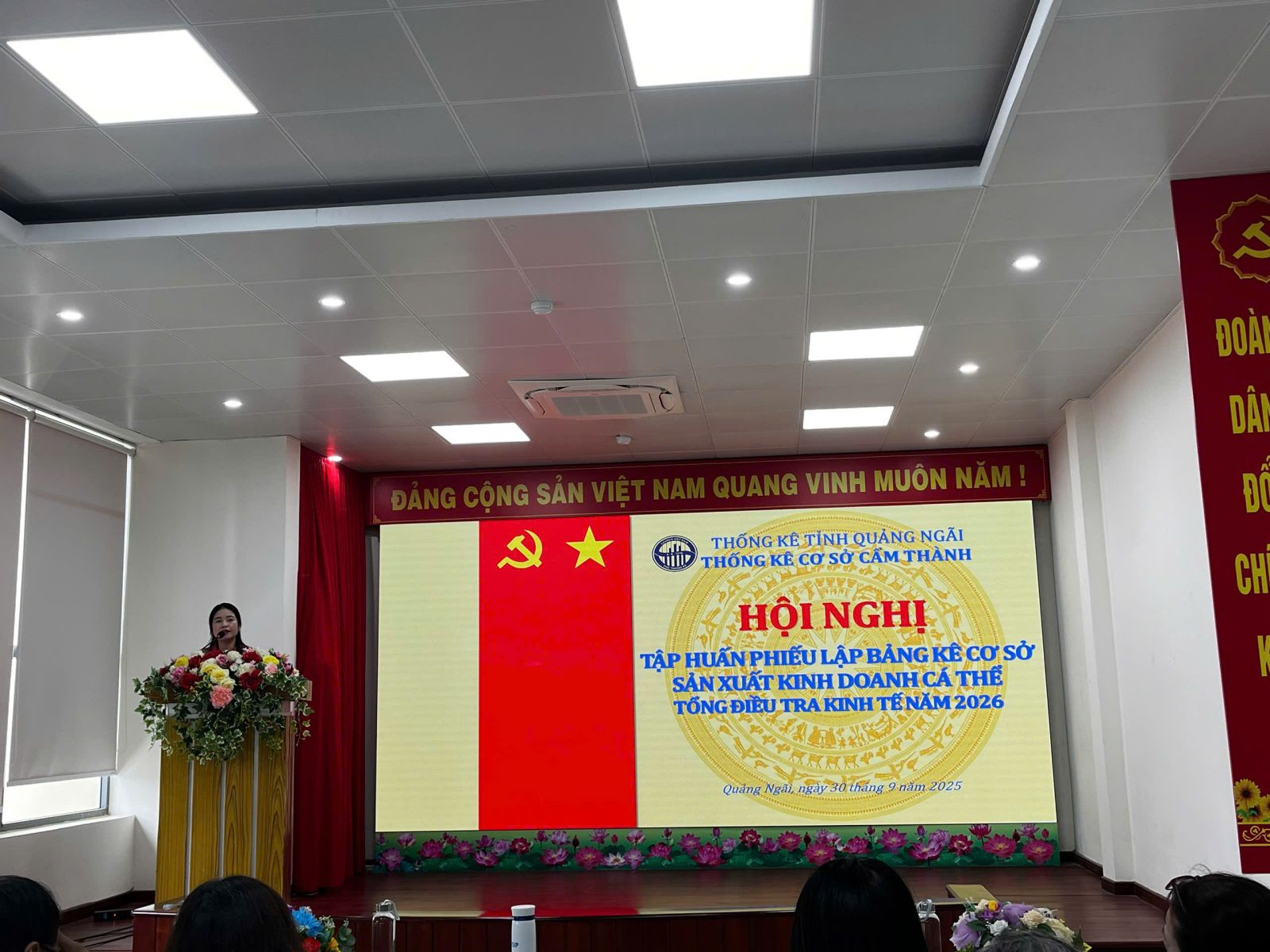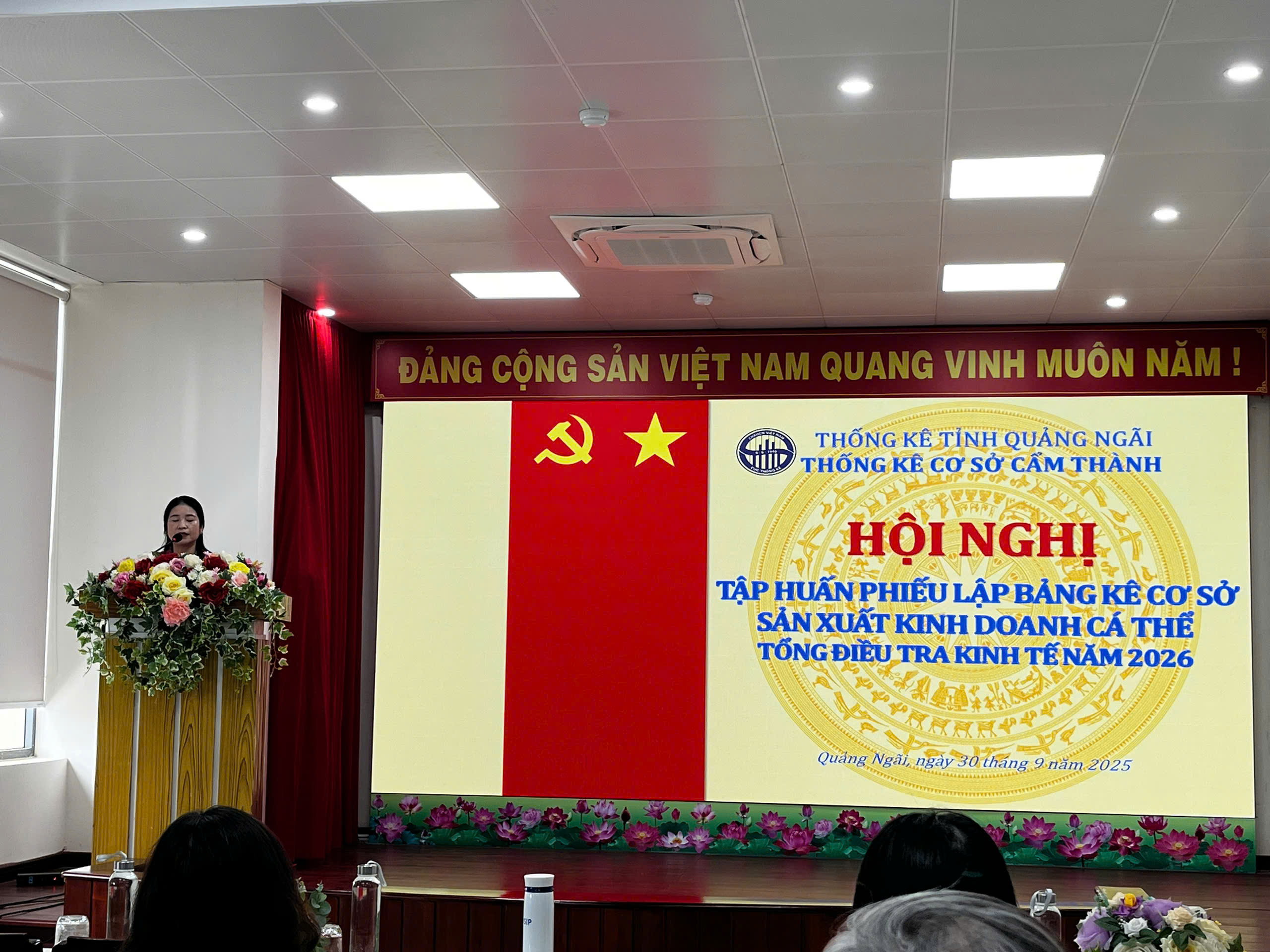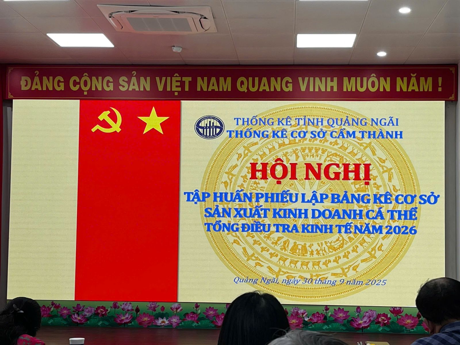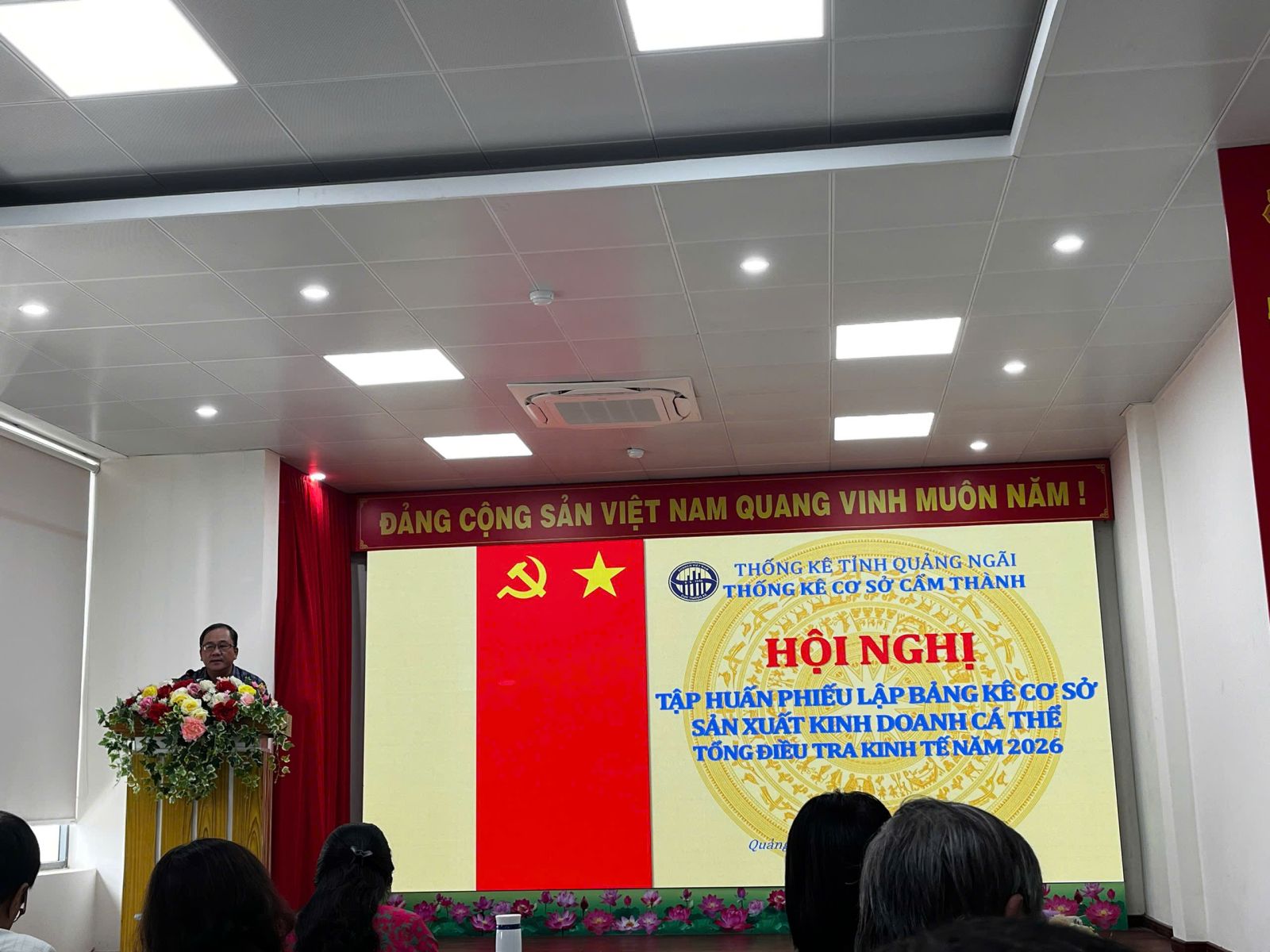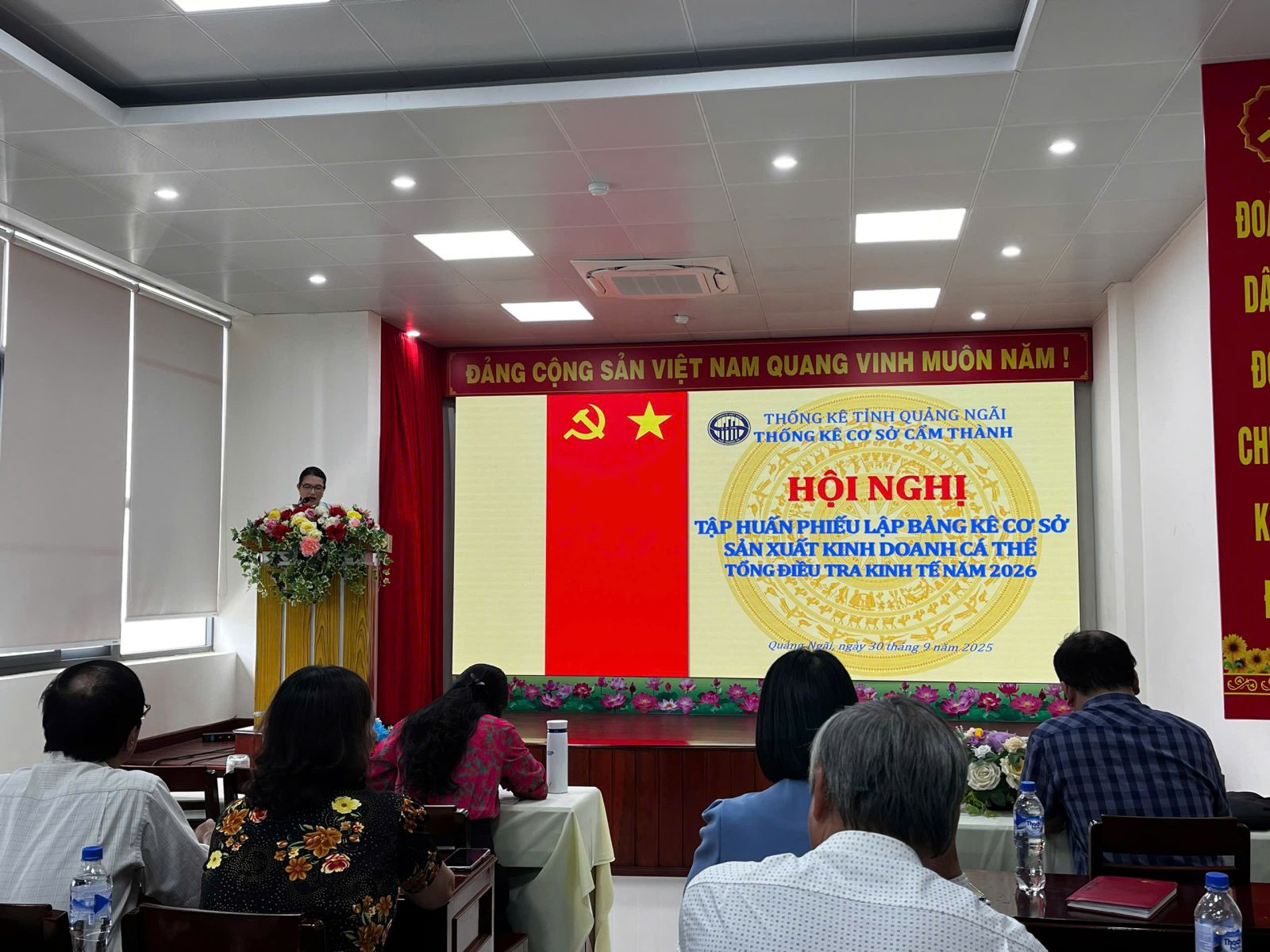Ngày 30/9/2025, Thống kê tỉnh Quảng Ngãi tổ chức Hội nghị tập huấn lập bảng kê cơ sở sản xuất kinh doanh cá thể phục vụ tổng điều tra kinh tế năm 2026 các hộ kinh doanh trên địa bàn phường, công chức phụ trách kinh tế phường, 25 tổ trưởng và các điều tra viên.