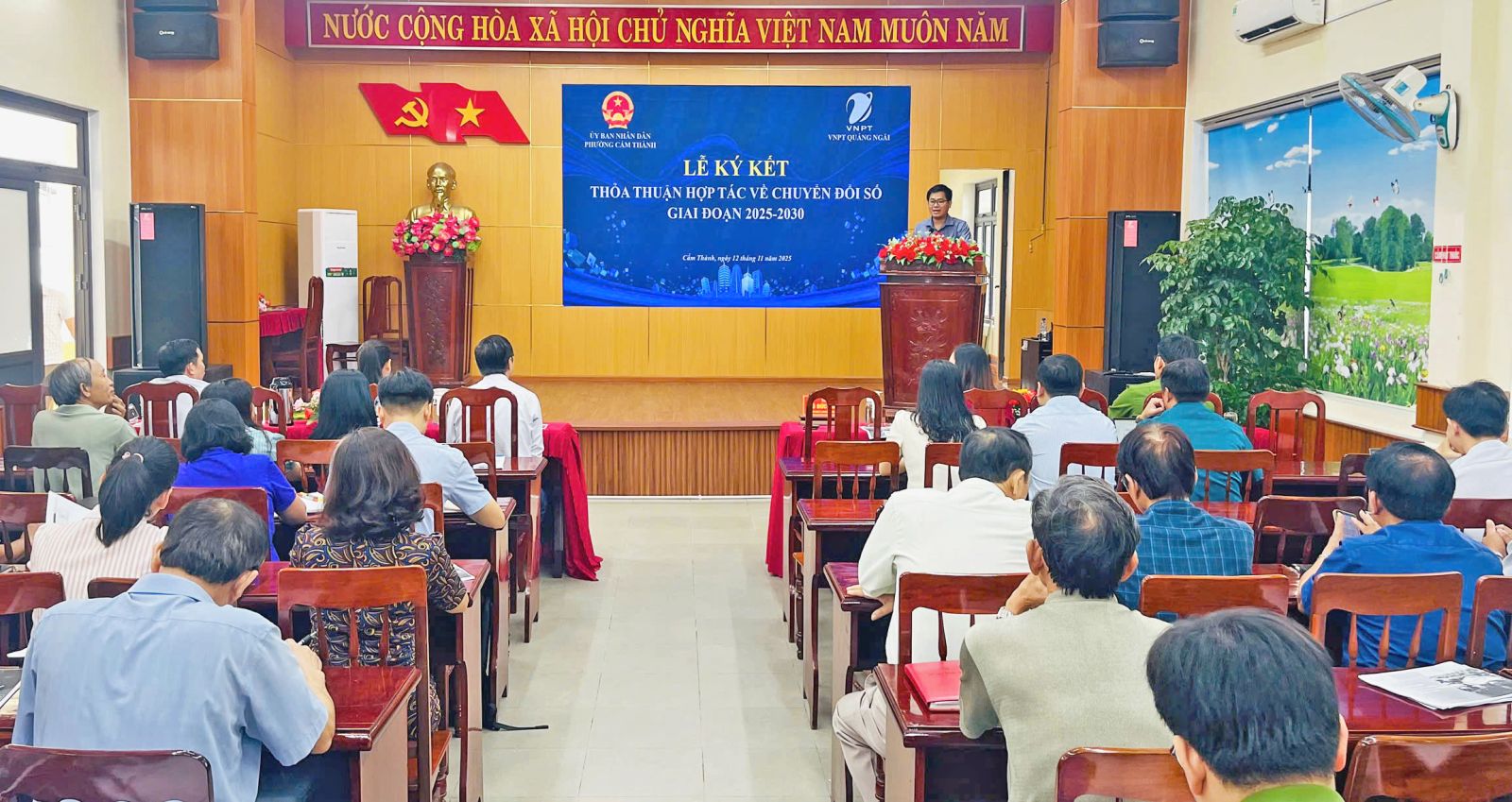 Sáng 12/11, UBND phường Cẩm Thành và VNPT Quảng Ngãi tổ chức Lễ ký kết thỏa thuận hợp tác chuyển đổi số giai đoạn 2025 – 2030, nhằm tăng cường phối hợp trong xây dựng hạ tầng viễn thông – công nghệ thông tin, phát triển chính quyền số, kinh tế số, xã hội số.