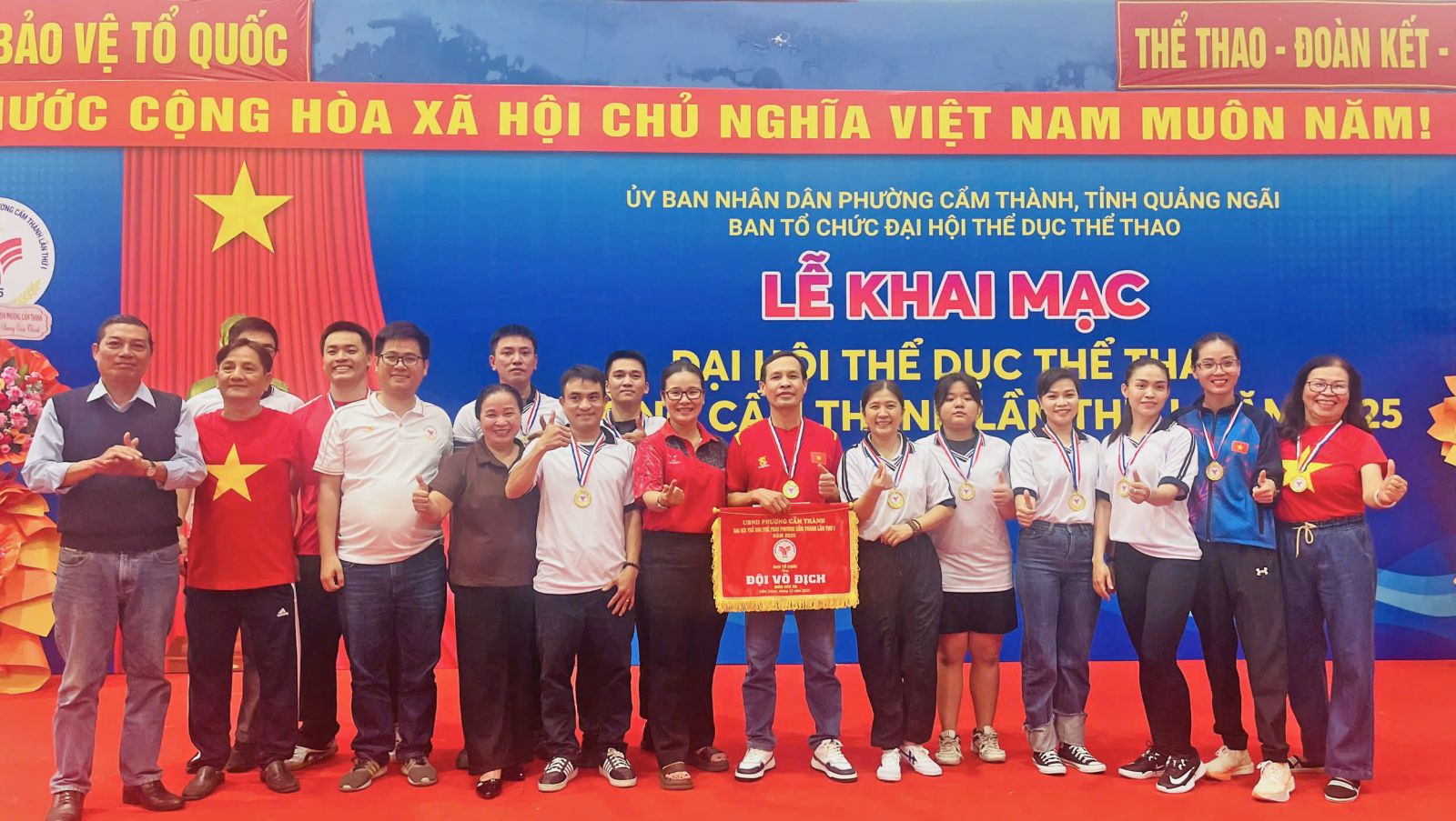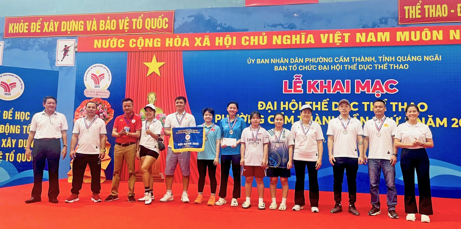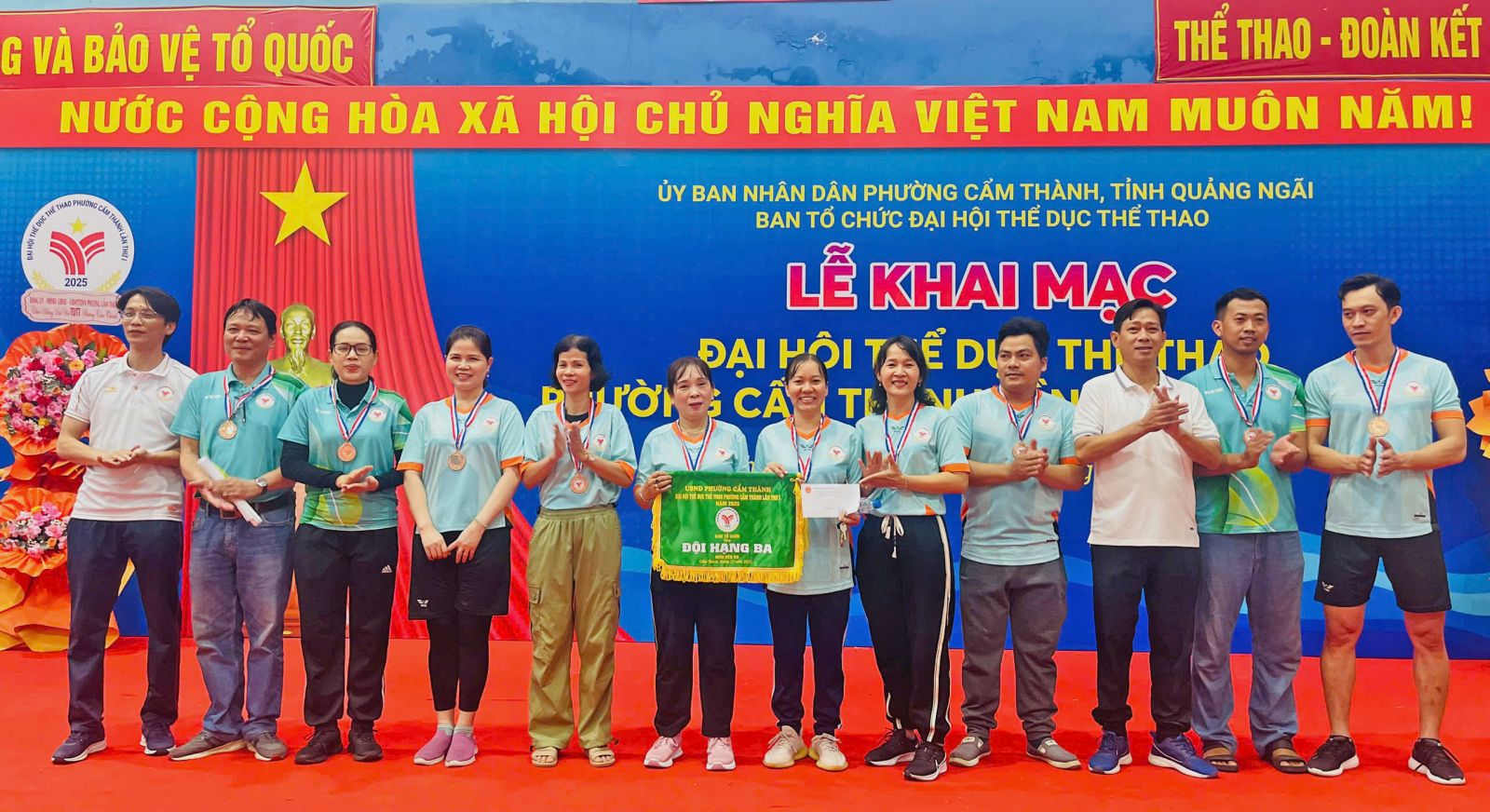 Ủy viên Ban Thường vụ Đảng ủy, Phó Chủ tịch UBND phường, Trưởng Ban Tổ chức Đại hội Thể dục Thể thao phường Cẩm Thành lần thứ I, năm 2025, Võ Đức Anh dự và trao giải.