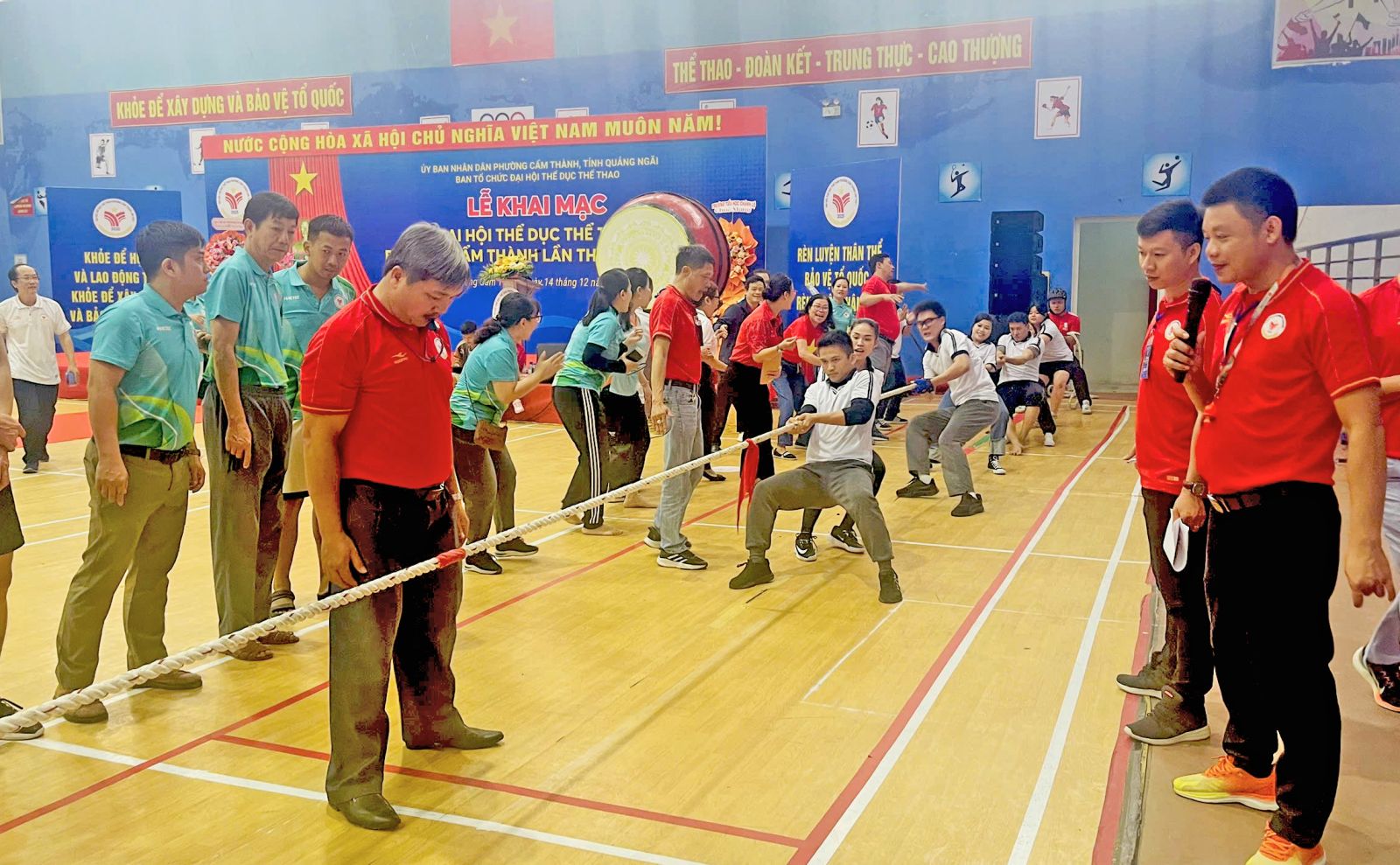 Ngay sau Lễ khai mạc Đại hội Thể dục Thể thao phường Cẩm Thành lần thứ I, năm 2025, môn thi đấu kéo co, một trong 8 môn thi của Đại hội đã diễn ra sôi nổi, thu hút sự quan tâm, cổ vũ của đông đảo cán bộ và các đoàn vận động viên.