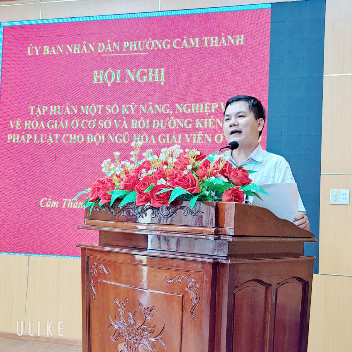 UBND PHƯỜNG CẨM THÀNH TỔ CHỨC HỘI NGHỊ TẬP HUẤN KỸ NĂNG, NGHIỆP VỤ VỀ HÒA GIẢI Ở CƠ SỞ VÀ BỒI DƯỠNG KIẾN THỨC PHÁP LUẬT CHO 125 HÒA GIẢI VIÊN Ở CƠ SỞ