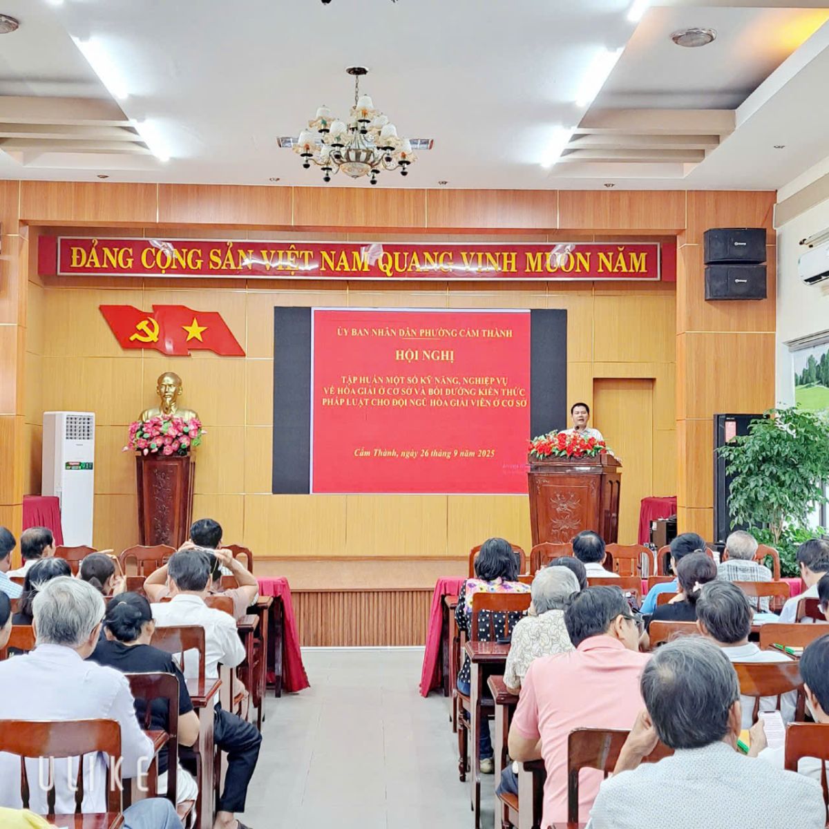 Ngày 26/9/2025, tại Hội trường UBND Cẩm Thành, UBND phường Cẩm Thành đã tổ chức Hội nghị tập huấn một số kỹ năng, nghiệp vụ về hòa giải ở cơ sở và bồi dưỡng kiến thức pháp luật cho đội ngũ hòa giải viên ở cơ sở.
